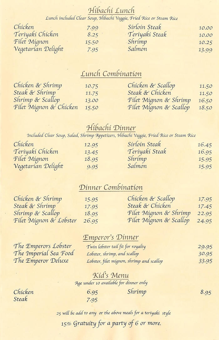 REGULAR MENU